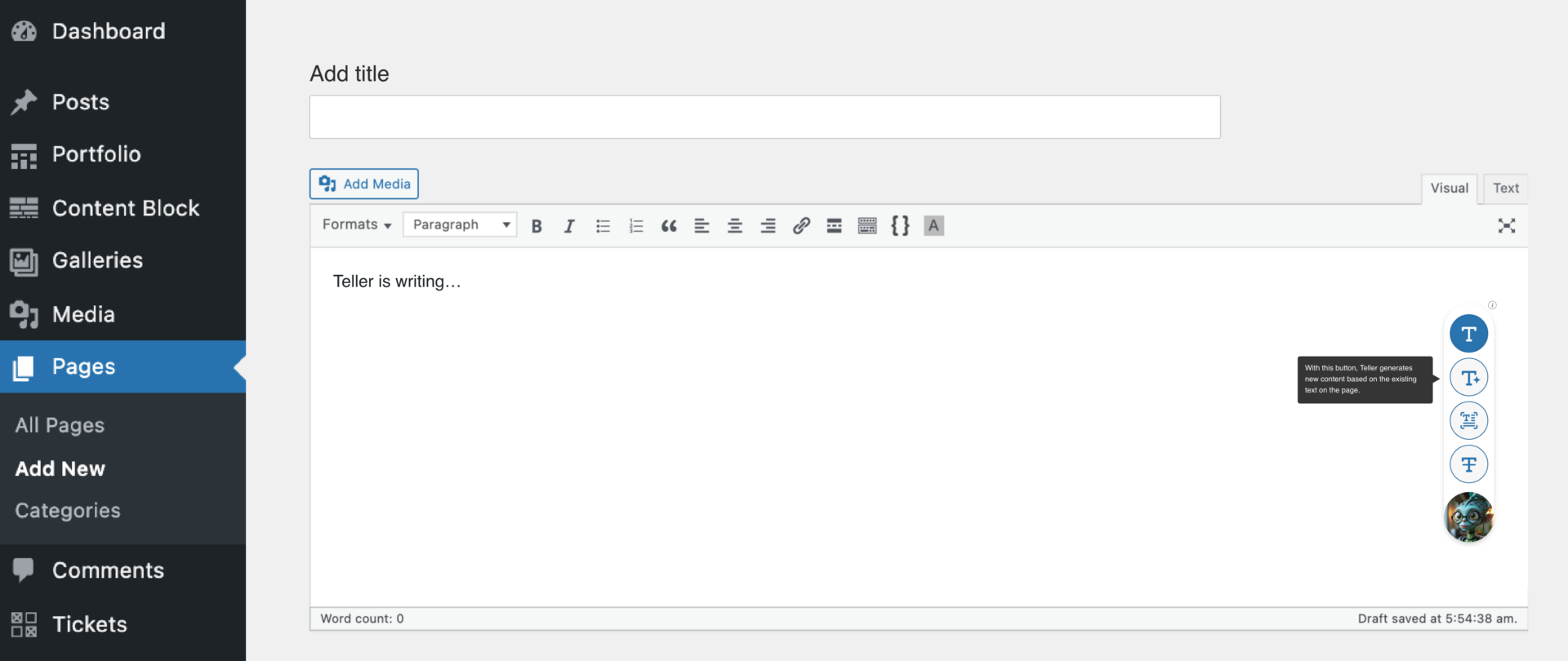 Teller is included in the Planet ⑨ plugin, offering AI copywriting tailored to the needs of most WordPress users.